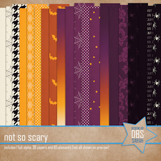 Not So Scary has 1 full alpha (uppercase, lowercase, numbers & punctuation), 20 papers and 65 elements.